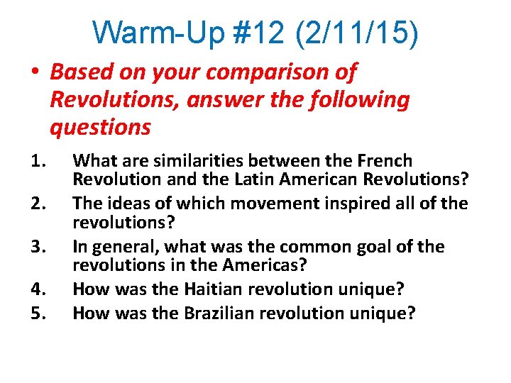 Latin American Revolutions The Latin American revolutions were the only revolutions which resulted in the abolishment of slavery Most governments that resulted from these revolutions were unstable, such as the mexican government, which had 12 presidents in a short amount of time French american revolution venn diagram - View presentation slides online. Help students contrast and compare the American and French Revolutions.