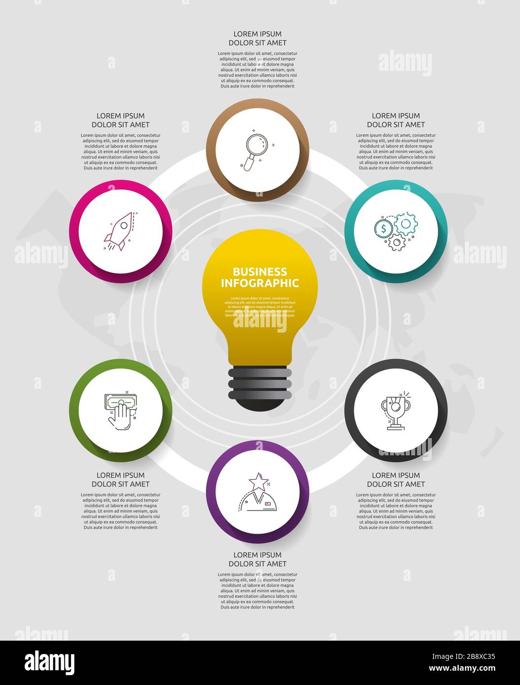 Modern Vector Light Bulb Infographics Business Template With Circles And 6 Parts Success Concept For Graph Flowchart Cycling Diagram Chart Timel Stock Vector Image Art Alamy