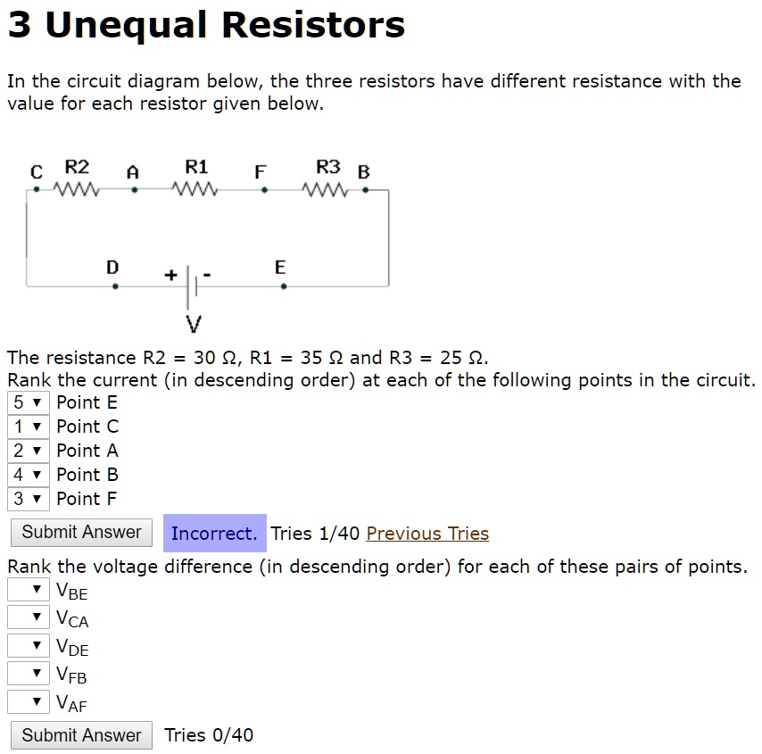 Solved 3 Unequal Resistors In The Circuit Diagram Below The Three Resistors Have Different Resistance With The Value For Each Resistor Given Below R2 I R1 N R3 B M The Resistance R2