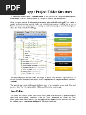 Figure 2 shows the structure of the root directory of Android If a new application is installed the Android API creates a new folder /Data/Data/. The folder ... Android uses packages not only to arrange the code in an application but to manage the application themselves. The above diagram shows the basic building blocks of an Android application. Android application in Eclipse or in any development tool have a pre-defined structure with code and resource organized into a number of folders.
