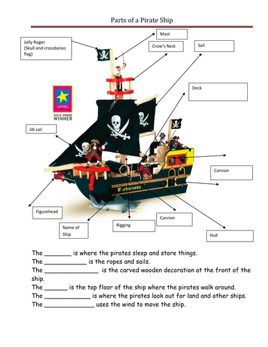 Parts of a pirate ship diagram. a diagram of the pirate ship, the same as a chart of all Gallion, at the time, seeking the Golden Hind, or Pinto, the settlers from their ships, which more or less the same size .... Reply Delete Replies An underwater obstruction of rock or coral which can tear the bottom out of a ship. The system of ropes, chains, and tackle used to support and control the masts, sails, and yards of a sailing vessel. A flat piece of wood at the stern of a ship that dips into the water and is used for steering. The first ship diagram above shows us the basic structure of the body of a ship. Parts of a pirate ship diagram basic electronics wiring diagram pirate shipsparts of a pirate ship diagram 20. Rigging the system of ropes wires and chains used to support and operate the masts sails booms and yards of a ship. Diagrams labeling the vital parts of a ... Parts of a Pirate Ship * Rigging – The system of ropes, wires and chains used to support and operate the masts, sails, booms and yards of a ship. * Mast – A large pole (spar) resin above the deck of a ship and supports sails and rigging. * Foremast – The front mast on a ship or any other sailing vessel.
