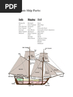 Ship Parts Pirate Ship. Rigging – The system of ropes, wires and chains used to support and operate the masts, sails, booms and yards of a ship.; Mast – A large pole (spar) resin above the deck of a ship and supports sails and rigging.; Foremast – The front mast on a ship or any other sailing vessel.; Mainmast – The middle, primary mast on a ship or any other sailing vessel. Pirate Speak - Ship Parts View source History Talk (0) A sailing vessel is a fairly complicated system of rigging and sails. It takes a dedicated crew to keep a ship running smoothly. There are countless parts of a sailing ship, but these terms may help make sense of it. Term: Definition: aft At, in, toward, or close to the stern of a ship. ... Diagram of a pirate ship. Included in these names is the specific part of the mast. Stay a heavy rope cable or wire used as support for a mast or spar. The pirate ship is a titanic mechanical heartless that resembles a dilapidated sailing ship. Keel the bottom of a hull scratching from bow to stern. The anatomy of a pirate ship.