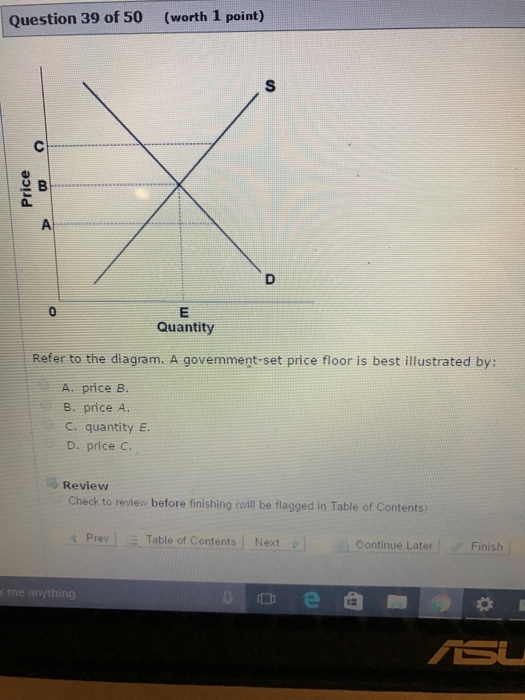 Refer to the below diagram. A government-set binding price floor is best illustrated by: price C.