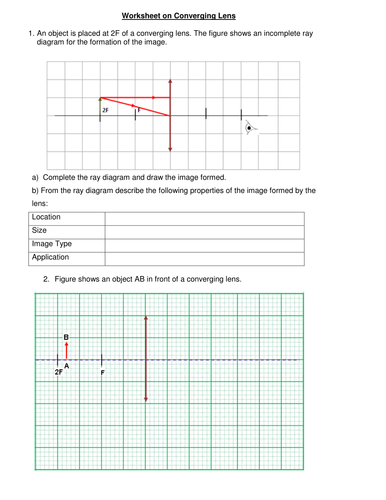 A worksheet to construct ray diagrams to show where images are formed by a converging convex lens and a diverging concave lens. This interactive quiz and printable worksheet on ray diagrams and lenses will help you determine what you do and dont know about the material. Di 625cm hi -125cm m 025 Diverging lens.