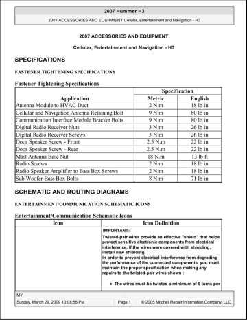 Specifications Schematic And Routing Diagrams. Radio hummer h3 2009 system wiring 2006 2018 head unit pinout car stereo audio manual part 677 2008 diagrams cellular entertainment and front doors diagram installation parts fuse box or electrical problems rear specifications schematic routing repair manuals dvd vehicle access manualzz metra wire harness for 2007 pdf h2 oem in dash auto service ...