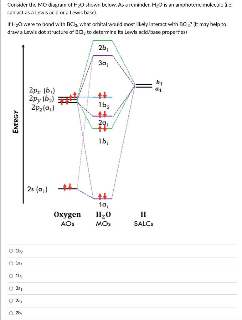 An advanced molecular orbital diagram of H2O (water) for the inorganic or physical chemistry student.