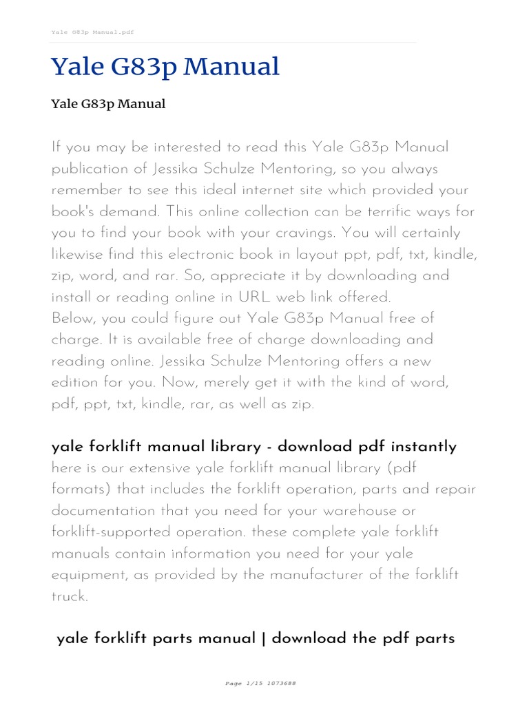 PDF Toyota Forklift 1. Safe operation (1) Make sure that correct size wire is used when lifting heavy material. (2) A fte r jacking up, always be sure to support with rigid rack or stand. 2. Availability o f SST and measuring tools Have the SST's and measuring tools available before starting work. Yale Service Manuals, PDF, service manuals for Yale forklifts, wiring... Wiring Diagrams and Service Manuals for Yale ForkLifts. Yale electric counterbalance forklifts... Yale Electric Forklift Wiring Diagram - 14 Yale Wiring Diagram Wiring Diagram Dash. 73 Best Yale Instructions Manual Images Manual High. Original Illustrated Factory Workshop Service Manual For. Toyota Forklift Ignition Key Wiring Diagram 12 Volt Ignition. Yale Electric Forklift Trucks Service Maintenance Repair. Download Yale Forklift Trucks Parts Manuals PDF Yale PDF electronic database is a catalog of spare parts for trucks, which includes a detailed catalog of parts and accessories trucks of all types and sizes of Yale. Service documentation for forklift trucks Yale CLASS 1 repair manual and wiring diagrams.