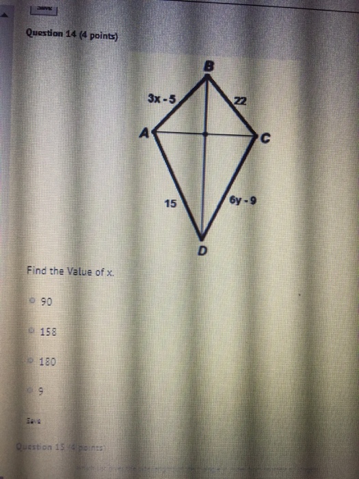 Geometry: Chapter 6 Flashcards | Quizlet Find the values of the variables and the lengths of the sides of this kite. x = 4, y = 12; 7, 13 Lucinda wants to build a square sandbox, but has no way of measuring angles.