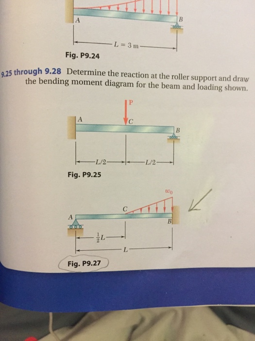 Solved Determine the reaction at the roller support and draw ... Determine the reaction at the roller support and draw 9.25 the bending moment diagram for the beam and loading shown. I/2 L/2 Fig. P9.25 ; Question: Determine the reaction at the roller support and draw 9.25 the bending moment diagram for the beam and loading shown. I/2 L/2 Fig. P9.25