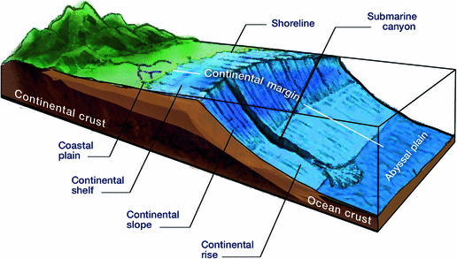 OCE 1001 Chapter 3 Flashcards - Quizlet On this perspective view of a passive continental margin, match the following letters with the correct features. D: continental slope G: shelf break A: continental shelf C: continental crust B: Abyssal plain F: continental rise E: oceanic crust. On the diagram of a passive continental margin shown below, match the letters with the correct ...