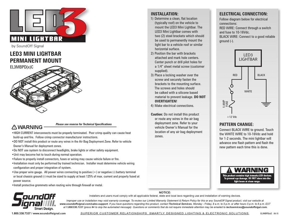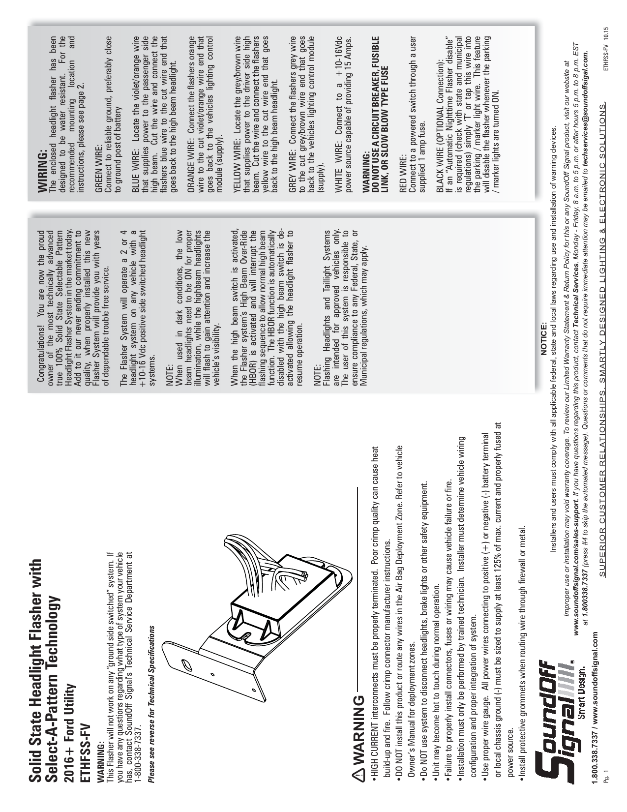 ETHFSS-SP-ISO Install | Manualzz Solid State Headlight Flasher with Select-A-Pattern Technology Isolation Model ... contact SoundOff Signal's Technical Service Department at 1-800-338-7337.