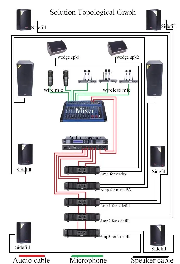 Apologies if the image is too big, | Live sound system ... Live Sound System Setup Diagram. Michael Piala. 91 followers . Home Recording Studio Setup. Home Studio Setup ... Dj Sound. Audio Sound. Computer Basics. Como conectar equipo de sonido profesional para grupo en vivo, bocinas, crossover y ecualizador. E. Edwin Bastidas Alegría. PA System Schematic Diagram - Astralsound The illustration below shows how the principal components common to most PA systems connect to each other. The arrows show the direction of signal flow. Low-level signals from instrument pickups and microphones are routed to the mixer's channel inputs via the multicore (grey).